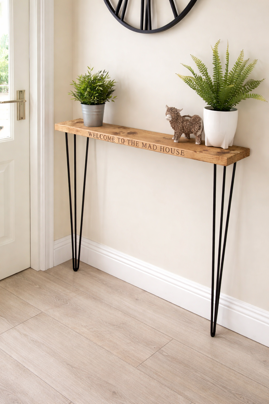 Add a touch of personality to your home with our engraved console table. Customised with text of your choice, it's the perfect way to personalise and add character.