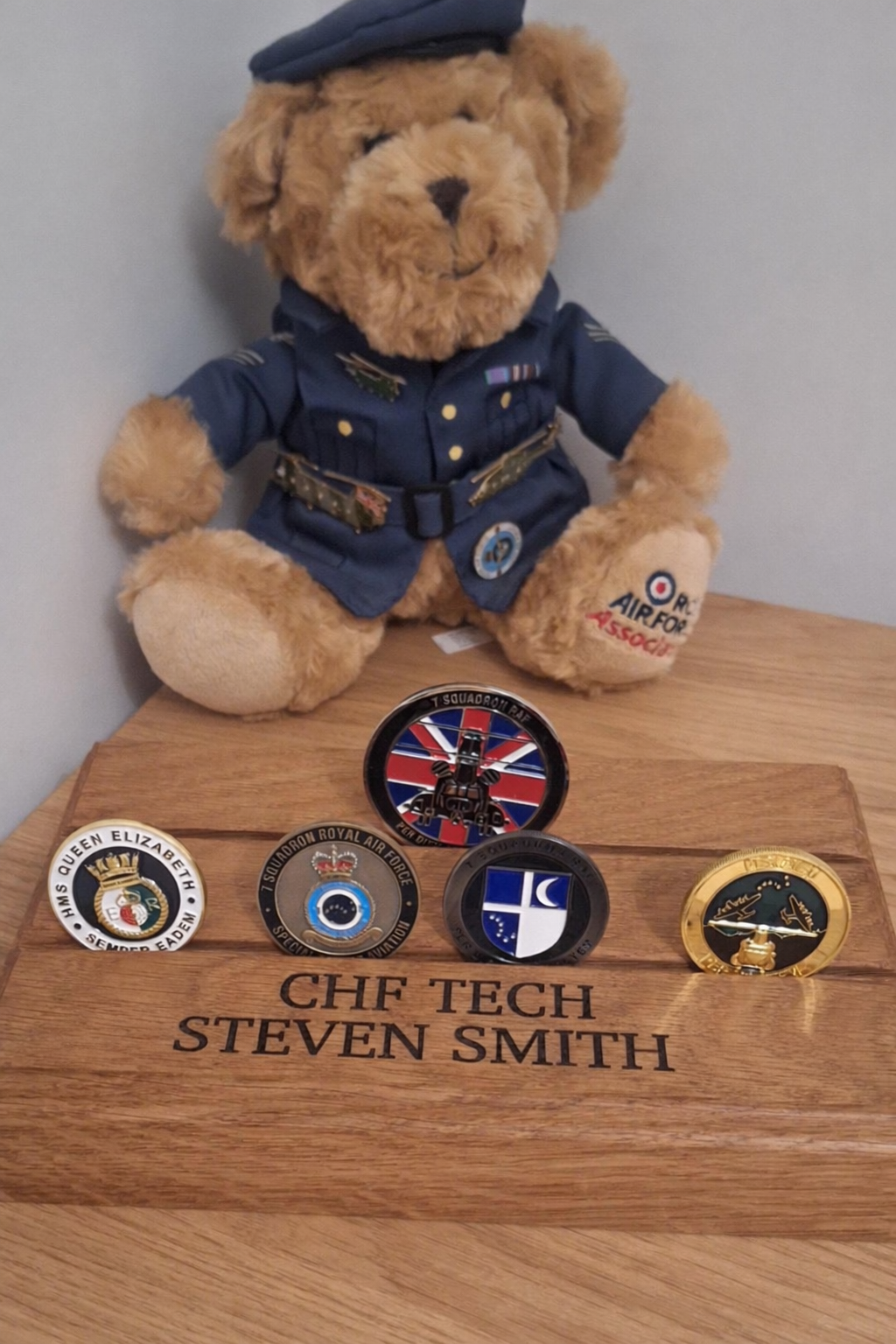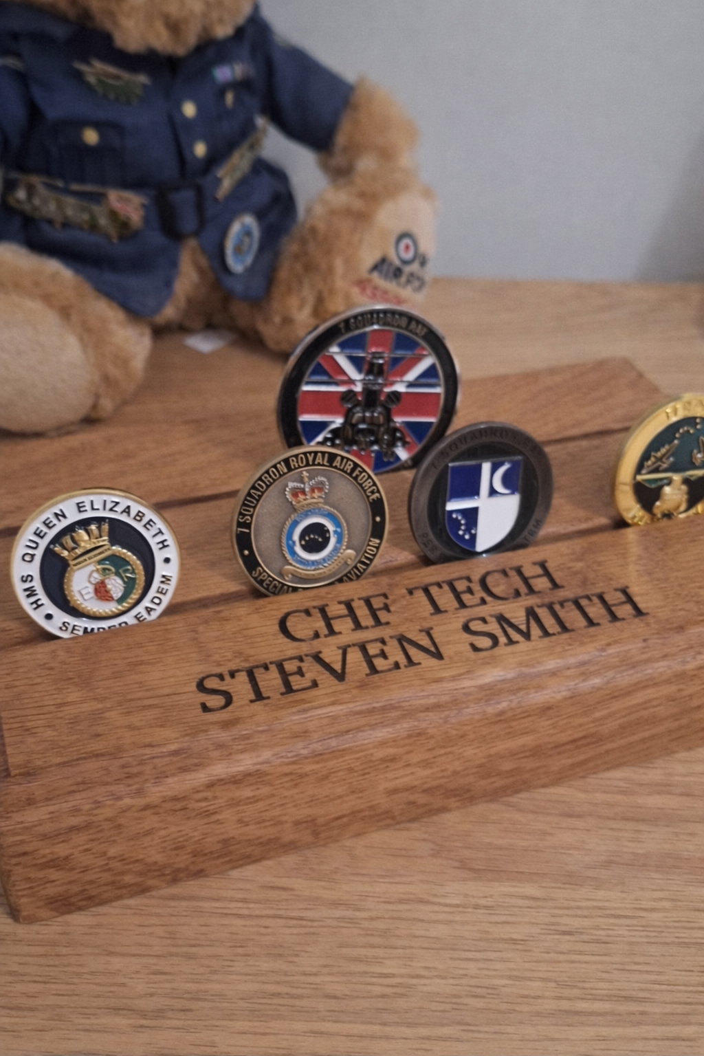 Each stand is fully personalised with precision engraving, making it a truly meaningful keepsake. Names, ranks, roles, or short messages are permanently engraved into the oak, creating a timeless tribute to service, achievement, or remembrance.